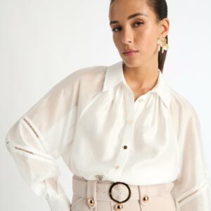 Elevate your staples. Introducing the Bel Air Shirt, showcasing a cotton fabrication, relaxed fit and long raglan sleeves with trim detailing. Pair with our Emily Skirt and Treasure Earrings to complete the look.?~section~Woven non stretch fabrication Raglan Sleeves with trim detail at elbow Buttons at front placket and cuffs Collar neckline 100% Cotton Gentle cold...