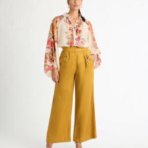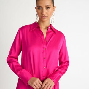 Own any room in our bold and elegant Shirt. Showcasing a luxe satin fabric, relaxed cut and front placket button closure. Pair with our Gracie Pant and Alora Earrings to complete the look.?~section~Woven Satin sheen fabrication Relaxed fit Front placket button closure Soft gold buttons at front closure and cuffs50% Viscose and 50% RayonCold Hand...