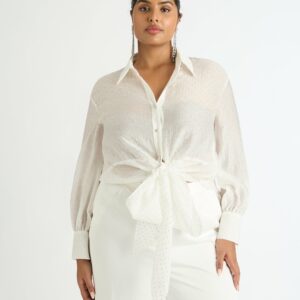 Timeless shirting has been given a modern . Introducing our Reflections Shirt - featuring front elongated ties to wrap or tie in bow and concealed front?button?placket. Pair back with our Rival Mini Skirt and Dazzle Earrings to complete the look.?~section~Tencel blended woven encrusted diamante fabrication Relaxed fit styling Front placket button closure Long sleeves with...