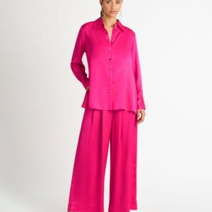 Own any room in our bold and elegant Shirt. Showcasing a luxe satin fabric, relaxed cut and front placket button closure. Pair with our Gracie Pant and Alora Earrings to complete the look.?~section~Woven Satin sheen fabrication Relaxed fit Front placket button closure Soft gold buttons at front closure and cuffs50% Viscose and 50% RayonCold Hand...