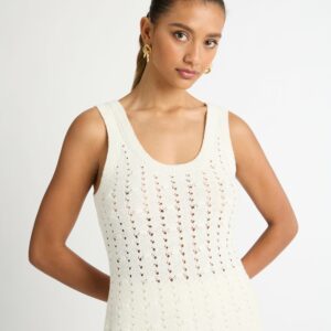 Introducing the Crochet Tank - A classic crochet staple piece to see you into the warmer months ahead. Showcasing a crochet knitted fabric and slim fit cut. Pair with our matching Crochet Maxi Skirt and Sonya Earrings to complete the look.?~section~Crotchet knit fabrication Fitted styling 60% Acyrlic 40% Polyester Cold Hand WashStyle: 1005633?