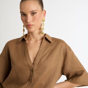Introducing?the Leo Linen Shirt - showcasing a relaxed?fit, V neckline and short sleeves. Pair with our matching Leo Linen Short and Shoreline Earrings to complete the look.?~section~ Woven linen fabrication Relaxed styling Front button placket closure V neckline Short sleeves High side splits 100% Linen Cold hand wash Style: 1005887?